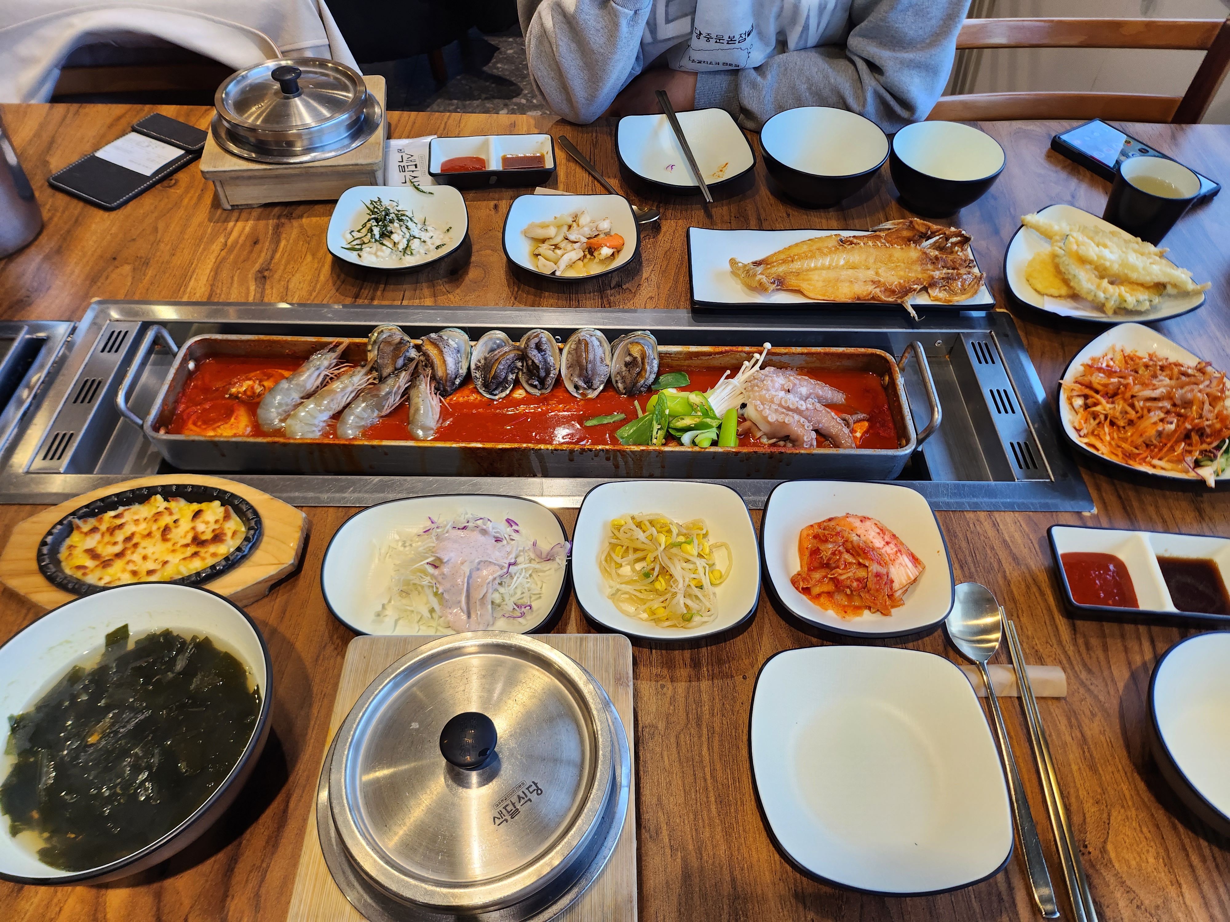 제주에서 꼭 먹어야할 음식 중에 갈치조림 진짜 기대했어요갈치조림 파는 곳은 많은데, 다이어트 갈치만 많이 팔더라구요.. 진짜 갈치조림은 딱 가격만큼 살이 있는 것 같더라구요. 그래도 중문에서 열심히 검색해서 찾은 갈치조림 집이예요. 깔끔해보이는 외관에 주차공간 넉넉해서 저녁먹으러 고고 ! 색달식당 중문 갈치조림구이 본점🏠 제주도 서귀포시 예래로 255-18, 1층📞 064-738-1741⏰ 10:00~21:00 (연중무휴) / 브레이크타임 15:00~16:00🚗 주차가능✅ 네이버 예약 가능 외관인데, 단독 건물에 있고 주차공간이 가게 바로 앞에 여러대 주차 가능하고밑으로 또 전용 주차장이 있더라구요. 그래서 단체로 오기에도 주차 걱정이 없을 것 같은 식당이예요. 맛집인지.. 들어서자마자 싸인이 ..